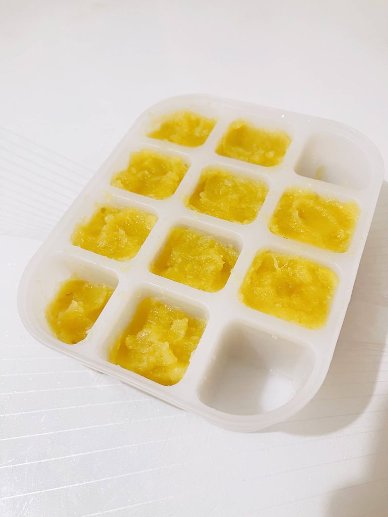 小提醒:食物泥可用「副食品分裝盒」放進冷凍庫,當天依寶寶食量取冰磚,放進電鍋蒸熟即可!冰磚建議不超過一週,熟食冷凍太長,營養素會流失,並有衛生安全的疑慮喔。