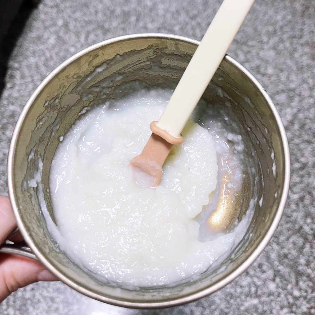 我和許多媽咪一樣從十倍粥開啟餵食副食品,米和水 1:10 方式用電鍋烹煮,再用調理棒或果汁機打成米湯,米湯可讓寶寶練習吞嚥。餵食兩次後觀察小太陽蠻會吞嚥的,雖然米湯不容易引起過敏,但營養價值很低…吃多無好處,於是換成食物泥餵食補充身體營養,並讓她練習吞嚥與咀嚼。