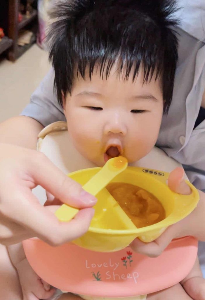 ★ 小太陽食用反應:第一口進食表情疑惑,南瓜香甜越吃越喜歡!吞嚥很順利,不到半小時把一整碗吃完。