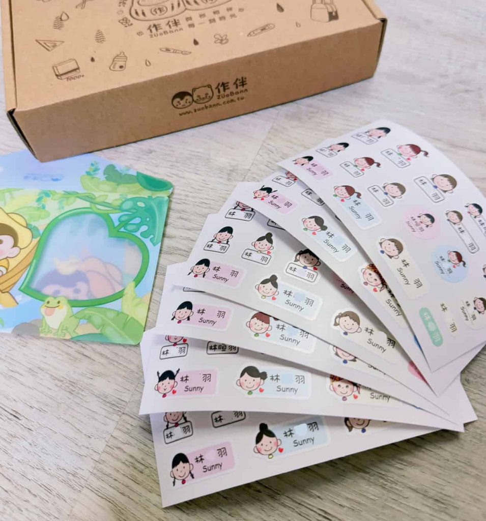 作伴的綜合尺寸防水姓名貼,每張圖案有兩張重複,附有收納夾讓妳收好貼紙不遺失。