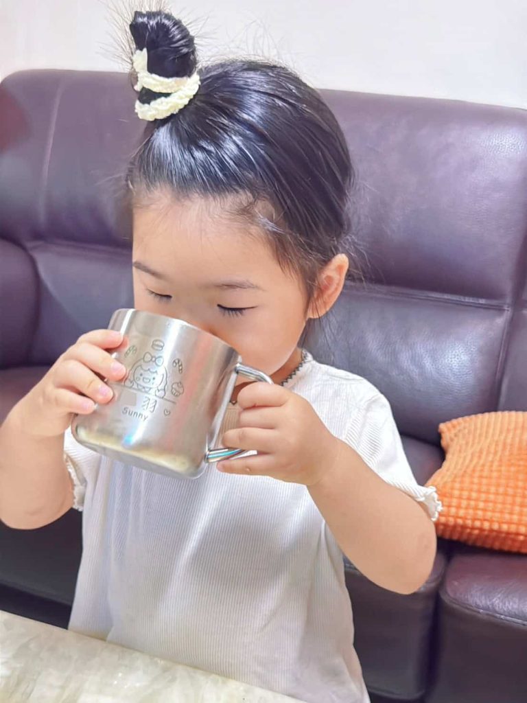 不鏽鋼杯的重量非常輕巧,即便是我家2歲小太陽的小手也能輕鬆拿取!